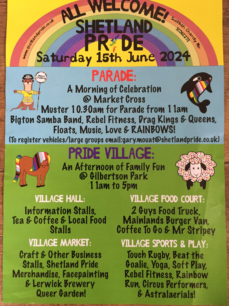 This Saturday (June 15th ) SHETLAND PRIDE will be filling the streets of Lerwick with a lively parade and floats from Market Cross to Gilbertson Park, Lerwick. Shetland Cat Rescue will be there too, at the park, with its stall packed full of goodies, including a supply of its best selling item: rainbow mice.
