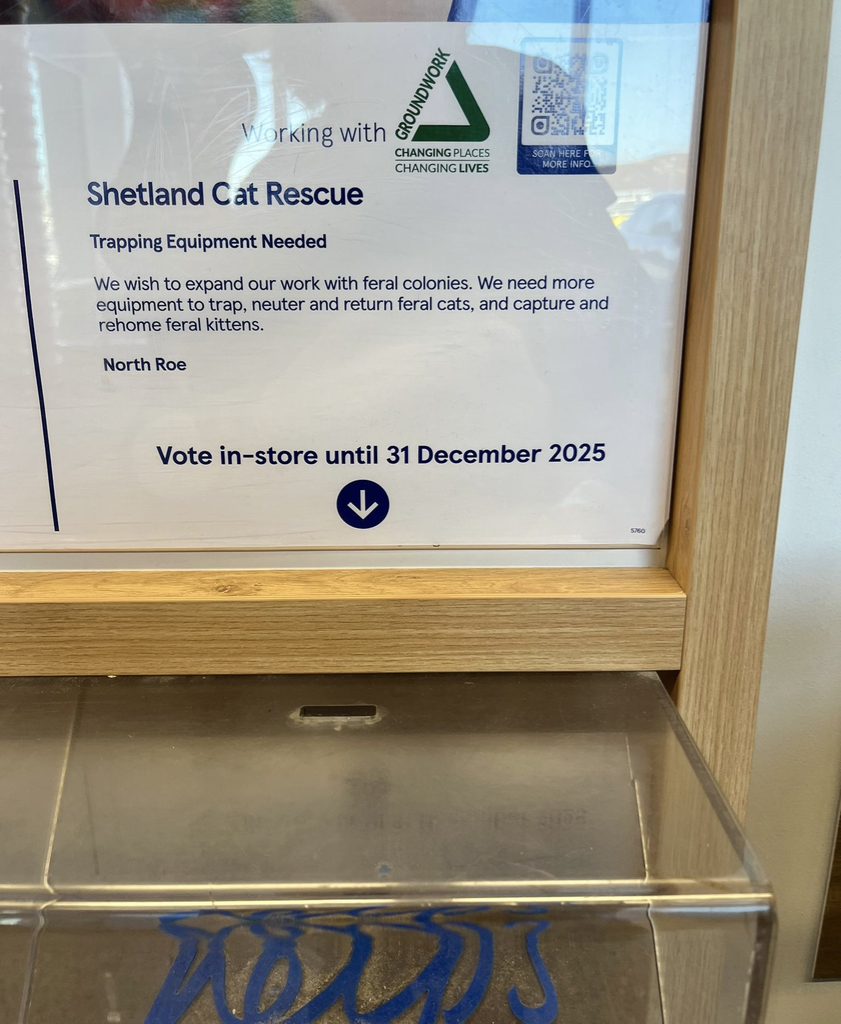 Please vote for Shetland Cat Rescue by collecting a blue token when you go shopping and putting it in Shetland Cat Rescue’s pot. If we get the most tokens, they will donate £1500 to buy some much needed equipment to help with trapping feral cats to get them neutered.