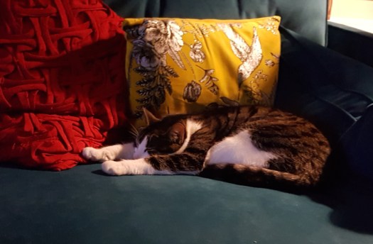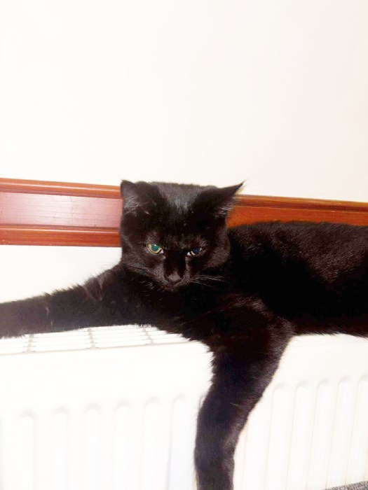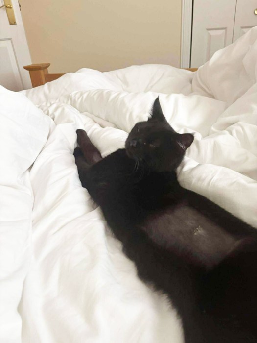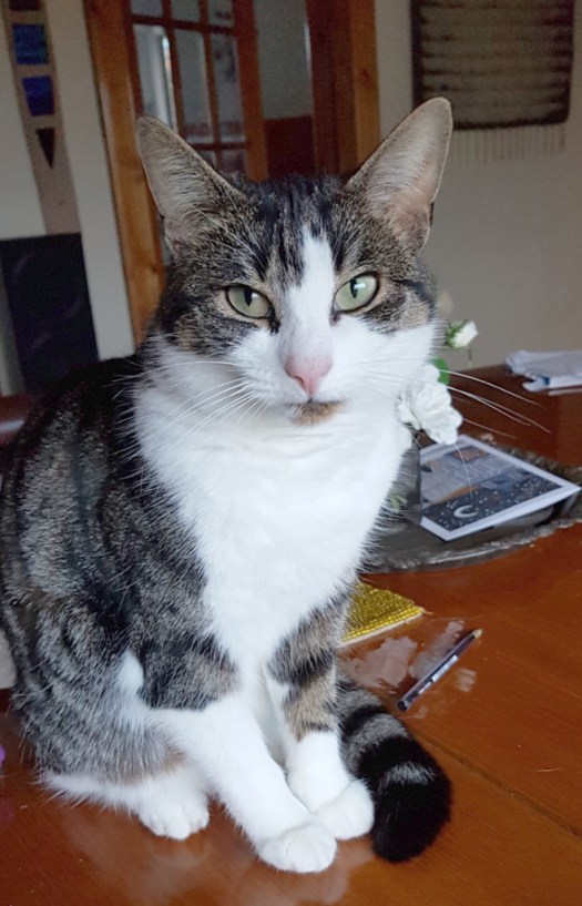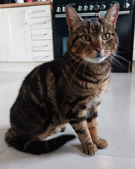 As a kitten his Mam was wild, so he is still a bit wary of strangers.