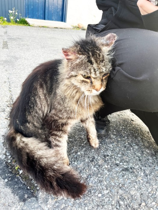 This cat has been seen around Cunningsburgh for a few weeks. He doesn’t appear to be neutered and has lots of scratches on his face.
